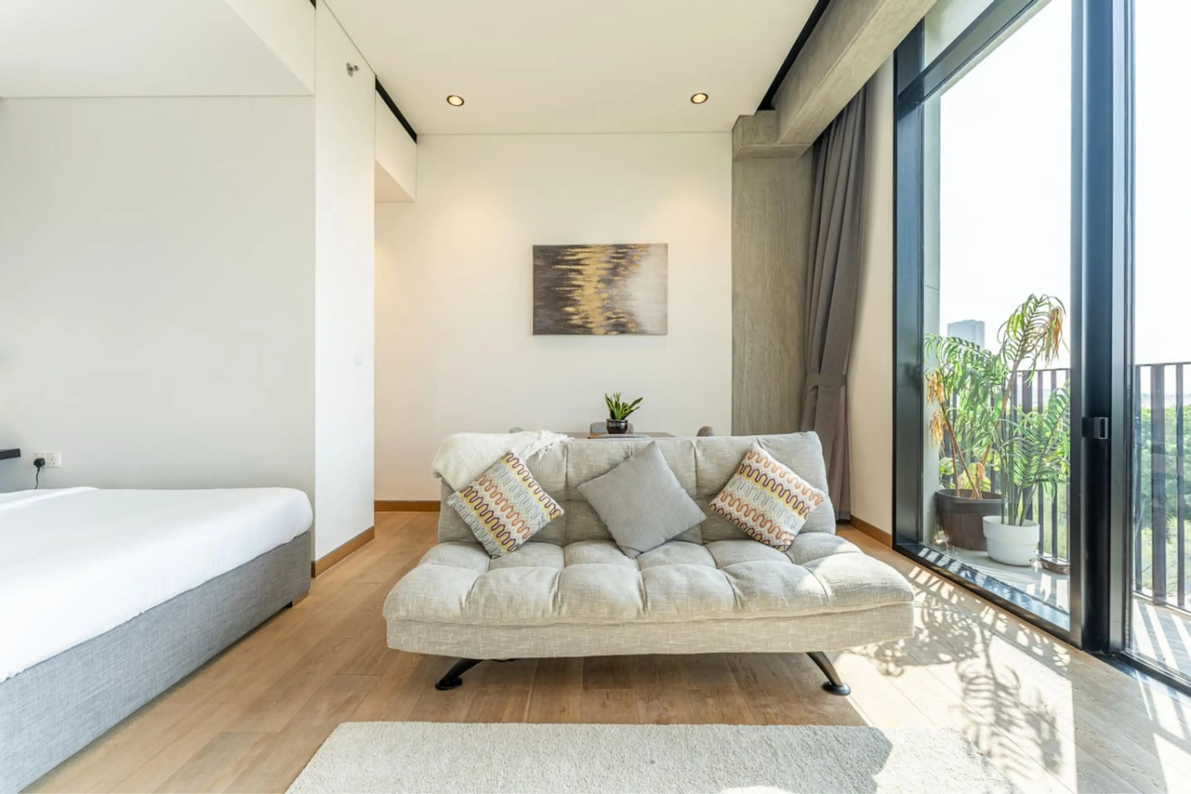Discover a unique urban retreat at KOA Canvas! This stylish studio combines modern design with natural elements, creating a tranquil space for relaxation. With a spacious layout, cozy sleeping area, fully equipped kitchen, and luxurious bathroom, it’s a perfect mix of comfort and style. Step outside...
