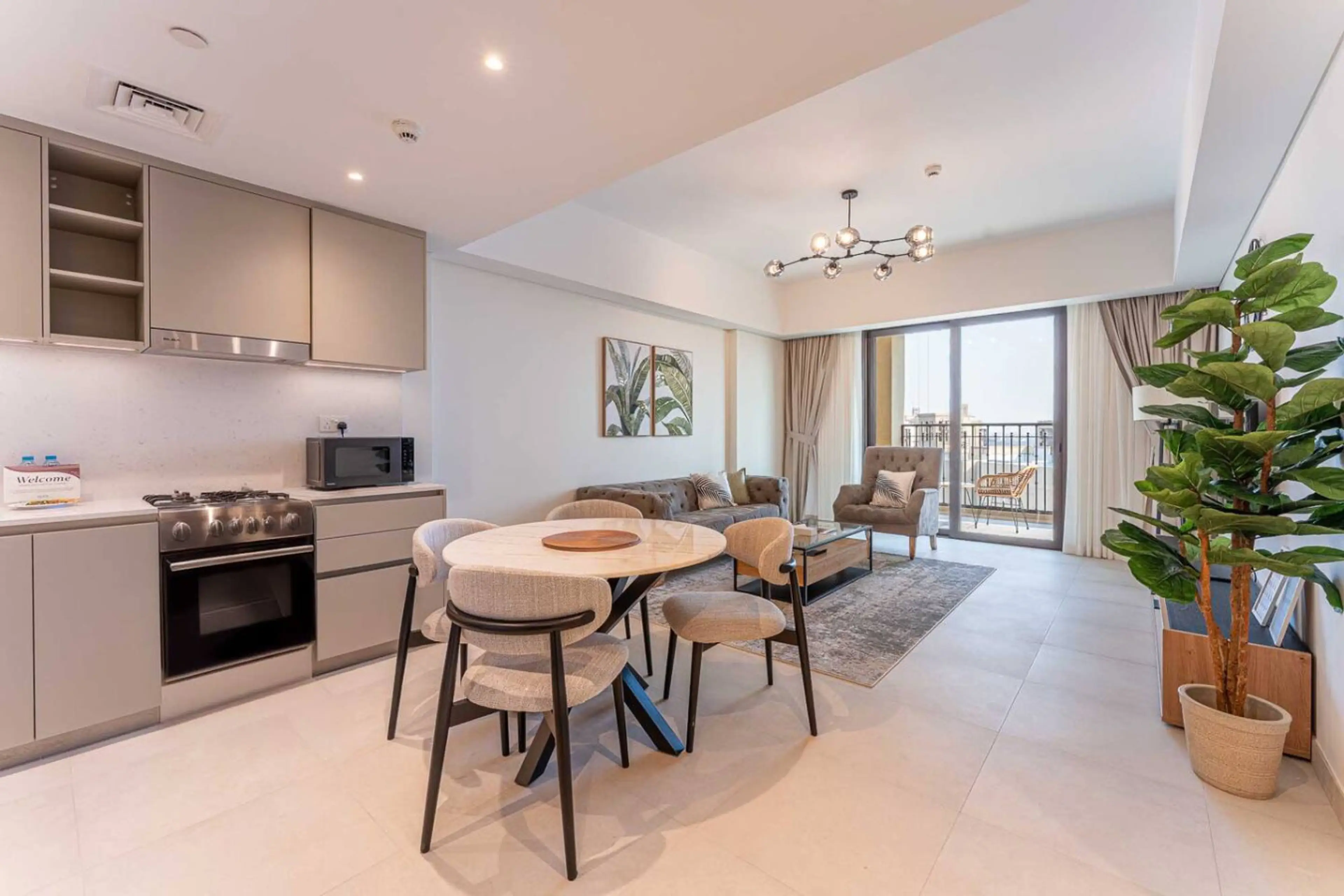Stay in this elegant 1-bedroom apartment in Al Jazi 3, Madinat Jumeirah Living. The apartment features a bright living area, fully equipped kitchen, cozy bedroom, and modern finishes throughout. Enjoy a peaceful community with beautiful walkways, lush surroundings, and easy access to Madinat Jumeira...